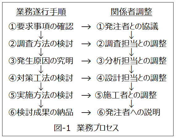 今回は、業務遂行手順と関係者調整の業務プロセス図を使って説明する方法を紹介しました。業務プロセス内容は、事業計画、設計計画、施工計画、環境評価など、業務分野によって大きく違ってきます。今回示した業務プロセス内容は一例なので、業務分野に合わせてアレンジすることが必要です。